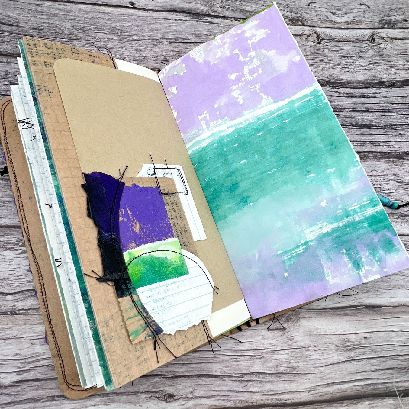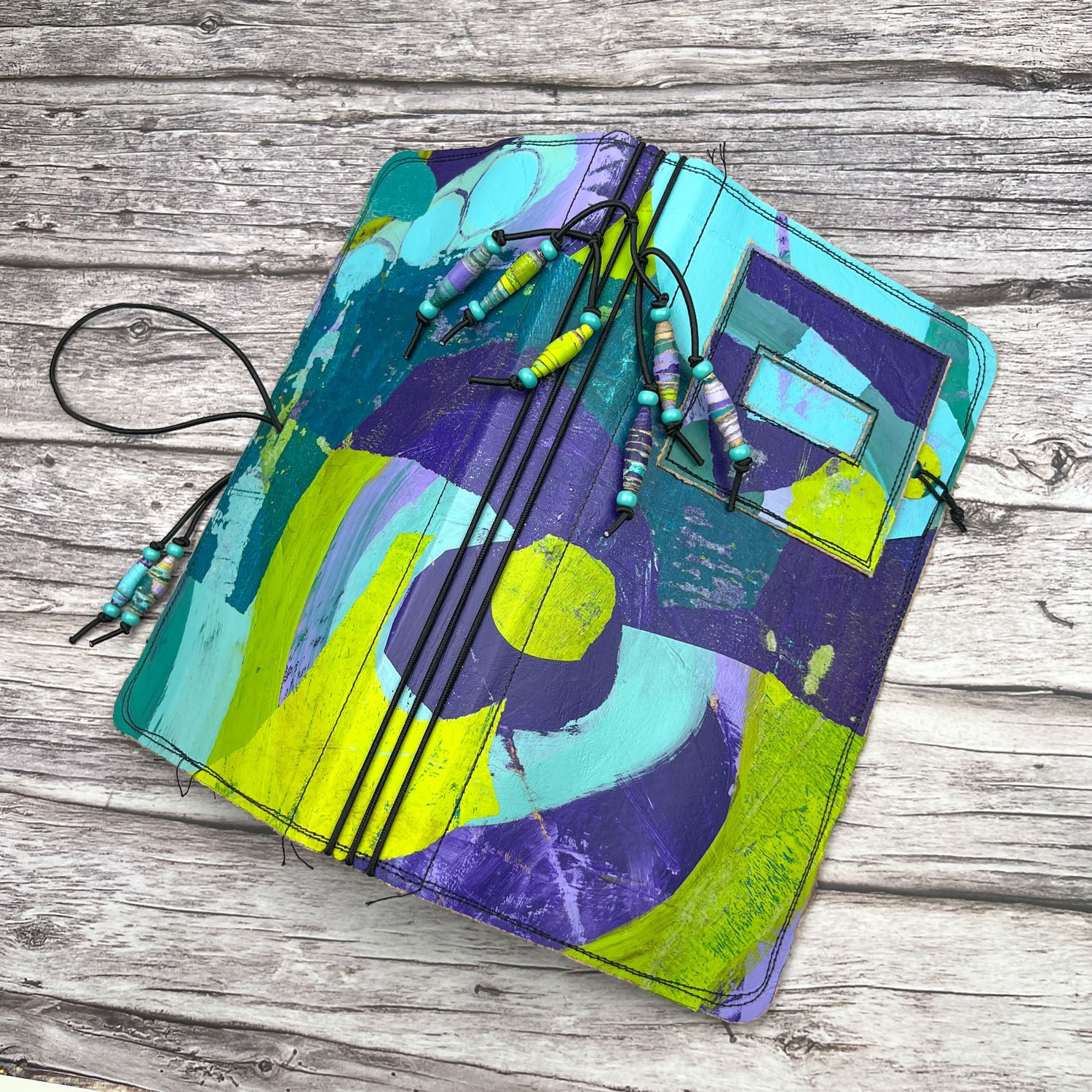 Be the first to review “Handcrafted Travel Size Journal with Beads, Distressed Layers, Elastic Bound, Purple and Teal”